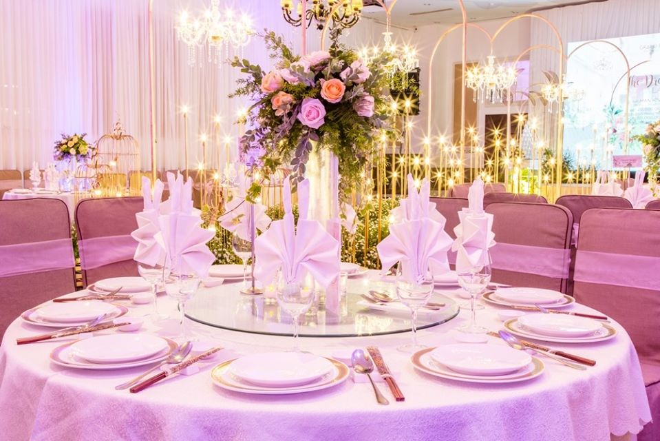 Tùy thuộc vào mỗi phong cách riêng của từng Trung tâm tiệc cưới sẽ thiết kế những gói trang trí tiệc cưới khác nhau dành riêng cho các cặp đôi của họ.